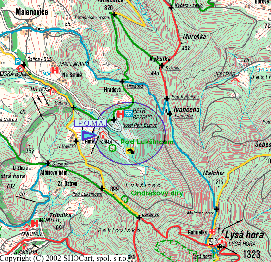 Lyžařské středisko P.O.M.A. Malenovice je situováno do horského údolí ve svahu nad říčkou Satinou (Malenovice - Hutě) pod nejvyšší horou Beskyd Lysou horou v nadmořské výšce 600-700 m.