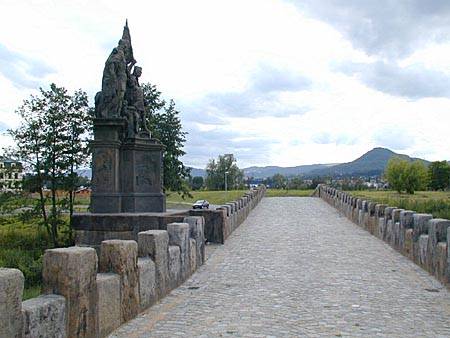 Děčínský kamenný most ze 16. století se klene přes Ploučnici nedaleko jejího vyústění do Labe. Nachází se v bezprostřední blízkosti nového mostu přes řeku Labe. Jde o pískovcovou stavbu z let 1564-1567 v pozdní gotice o celkové délce 84 m a šířce 4,8 m, zdobenou sousoším M. J. Brokoffa z roku 1714. Maximální výška nad hladinou Ploučnice je 7,7 m. Most je zajímavý plastickým zubořezem (odvozeným z gotického cimbuří) na parapetu vysokém 1,1 m a širokém 0,3 m. Most je již vyřazen z provozu, ale je památkově chráněný. V roce 2004 byla dokončena náročná oprava po povodních v roce 2002.