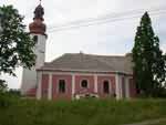 Původní dřevěnou modlitebnu z kůlů nahradili frýdlantští Redernové v roce 1570 kamenným kostelíkem. K dnešnímu kostelu byl položen základní kámen v roce 1739. Kostelní věž byla do současné podoby postavena roku 1774. Levý postranní oltář z roku 1769 byl nově zasvěcen sv. Janu Nepomuckému, pravý postranní oltář Panně Marii. Svěcení prováděl probošt svatovítského chrámu v Praze, který do oltářního kamene vložil ostatky sv. Valentýna a sv. Theodory. Kostel je státem chráněnou památkou, stejně jako fara z roku 1767 a socha sv. Jana Nepomuckého z roku 1861.