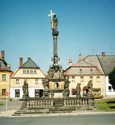Náměstí v Jablonném v Podještědí dominuje barokní morový sloup z roku 1686 s plastikou sv. Salvátora, která je obklopena sochami českých patronů. Sloup byl postaven na památku obětí moru, který Jablonné postihl v roce 1680.