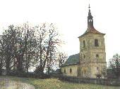 Z původního kostela připomínaného již v roce 1363 se dodnes zachovaly stopy středověkých nástěnných maleb. Dnešní kostel pochází z druhé poloviny 15. století, renesanční fasádou a psaníčkovými sgrafity byl opatřen v 70. letech 16. století. Ke zbarokizování kostela došlo v roce 1695 a v roce 1734 byla přestavěna hranolová věž se zvonicí. Kazetový strop z roku 1722 je složený z 91 čtverců, z nichž 60 vyzdobil figurálními malbami neznámý lidový umělec. Zajímavostí je oltář v kostnici, který je sestaven z lidských lebek a kostí.