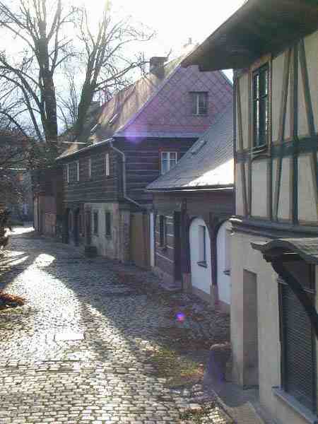 Domy stojící v sousedství autobusového nádraží představují jednu z mála zachovaných částí staré Chrastavy. Objevují se tu roubené i hrázděné stavby. Roubené stavby byly častější v místech, kde žilo české obyvatelstvo, zatímco hrázděné stavby převažují tam, kde žilo hlavně německé obyvatelstvo.