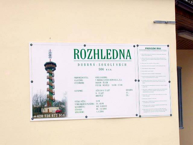 Rozhledna na Sokolím vrchu je nejmladší rozhlednou v České republice. Byla uvedena do provozu 1.5.2004. Věž je vysoká 51 m a vyhlídková plošina se nachází 31 m nad okolním terénem. Rozhledna vznikla díky dobré vůli při výstavbě vysílače pro mobilní operátory.