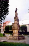 Sloup Nejsvětější trojice se nachází uprostřed šestiboké kuželkové balustrády, z níž vystupuje jednolitý blok základního soklu, který je na hranách opatřen pilíři. Nad nimi jsou pak umístěny sochy tří patronů v mírně nadživotní velikosti ? sv.Václav, sv.Florián a sv.Jan Nepomucký. Sloup pokračuje vzhůru ve formě trojbokého obelisku, z něhož se od vrcholu ve spirále odvíjejí oblaka s hlavami sedmi andílků. V dolní třetině jehlanu obelisku je osazeno titulní sousoší Nejsvětější trojice s patřičnými atributy a u jeho nohou pak sedí na oblaku sv.Panna Maria.