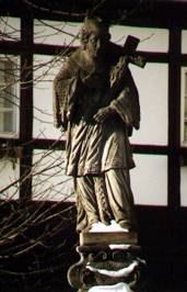 Před kostelem sv. Mikuláše stojí dvě sochy, které pravděpodobně pocházejí z druhé třetiny 18.století. Sochy znázorňují sv. Jana Nepomuckého a Pannu Marii.