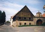 Panský dvůr v Úštěku je připomínán již v roce 1426. Historicky cenná je barokní brána se štítem a letopočtem 1677. U ní je další branka s označením 1711.