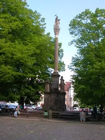 Sloup postavil sochař A.Kitzinger a kameníci A.Kolderer a A.Walde v letech 1681-83. Sloup byl postaven na paměť obětem morové epidemie, která město postihla v roce 1680.