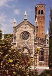 Kostel byl postaven v roce 1906 na objednávku rodiny Clary-Aldringenů jako kopie benátského kostela Santa Maria dell´Orto. Autorem plánů je architekt P. Bigaglio, stavbu provedl J. Siegmund z Teplic a profesor Pietro Bigaglio z Akademie výtvarných umění v Benátkách. V kostele je hrobka rodiny Clary Aldringenů a Ficquelmonů.