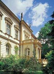 Neorenesanční budova byla postavena v roce 1876 a až do roku 1894 v ní bylo umístěno gymnázium. V letech 1894-96 byla přestavěna na rodinnou vilu, z té doby pocházejí neobarokní interiéry. Od roku 1946 v budově sídlí knihovna.