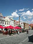 Městská památková rezervace starého lázeňského města Třeboň byla vyhlášena již v roce 1949 k ochraně historického jádra s neobyčejnou hodnotou a uceleným souborem historických budov. Významnou památkou náměstí je stará raně barokní radnice s 31 m vysokou vyhlídkovou věží, která je dominantou města. Součástí radničního komplexu je měšťanské divadlo z první poloviny 19. století. Celé náměstí je lemováno měšťanskými domy s renesančními a barokními štíty.