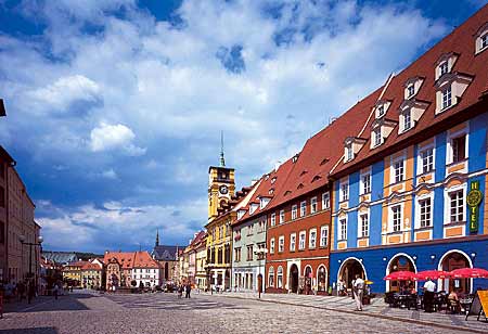 Ve vnitřním městě byla vyhlášena na ochranu zachovaného historického jádra městská památková rezervace Cheb. V městské zástavbě vyniká nejvíce malebné náměstí s charakteristickými sedlovými střechami domů a hrázděným Špalíčkem. Jedná se o bizarní skupinu 11 kupeckých domů ze 13. století, které jsou symbolem náměstí. Dále se zde nachází gotický farní chrám sv. Mikuláše a Alžběty.