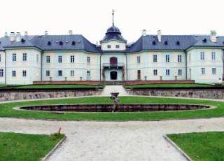Zámek byl vybudován v 16. století v renesančním slohu. Po požáru v roce 1712 si nechal tehdejší majitel Václav J. Lažanský a posléze jeho manželka a syn vybudovat nové sídlo, které má protáhlý půdorys ve tvaru písmene L. Do patra vede zachované schodiště s alegoriemi Čtyř živlů. Dnes je v zámku umístěno muzeum a přístupné jsou i zámecké interiéry. Za budovou zámku je zámecký park.