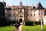 Barokní zámek. Původně čtyřboká věžovitá stavba z 1. poloviny 13. století byla ve 2. polovině 14. století nahrazena vodní tvrzí. V roce 1565 byla tvrz přestavěna na renesanční zámek. V roce 1638 byl zámek zpustošen saským vojskem, opraven v barokním stylu, další úpravy proběhly ještě v 18. a 19. století, kdy zámek získal dnešní podobu.