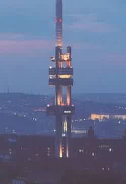 Televizní vysílač Praha, známý spíše jako Žižkovský vysílač, stojí uprostřed Mahlerových sadů přímo uprostřed hlavního města. Byl dostavěn v roce 1992 (stavba probíhala v letech 1985-1992). Jsou zde dva moderní výtahy, které jedou rychlostí až 4 m/s. Požární schodiště vede až do výšky 124 m. Celá stavba váží asi 11 tun. V horní partii je pro veřejnost přístupná restaurace a rozhledna. Z nich je nádherný pohled na Prahu. Vysílač je slavný i díky lezoucím železným dětičkám (autor David Černý).