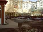 Uprostřed Nového Města, na prostoru vymezeném Václavským a Jungmannovým náměstím a Vodičkovou a Jungmannovou ulicí se nachází krásná klášterní zahrada, která je přístupná z Jungmannovy ulice a z Václavského náměstí. Původní klášterní zahrada se vyznačuje křížovou osnovou cest, která je velmi podobná raně baroknímu vzoru. V centrální části najdeme barokní altán, který je obklopen malebnou květinovou zahrádkou a oddělený od ostatní plochy kovanou mříží. Jako v ostatních pražských zahradách i zde se nacházejí volné plastiky. Zmiňme například chlapce s mušlí (S. Hanzík) nebo tančící víly (J. Klimeš). Pokud vstupujeme z Václavského náměstí, na vratech nalezneme reliéf s výjevy ze života sv. Jana z Assisi (K. Císařovský). Nachází se zde i nejstarší strom Prahy (pahýl kmene se soškou Panenky Marie) ? tis červený starý 400 let.