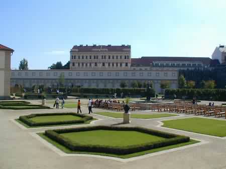 Zahrada je vybudovaná souběžně s Valdštejnským palácem a je sevřena ze západu, severu a východu budovami samotného paláce a z jihu vysokou ohradní zdí s oblouky. V raně barokní zahradě, která je řešená přísně geometricky, najdeme umělou krápníkovou jeskyni, voliéru, kašny, volné plastiky a sousoší a dále sbírku bronzových odlitků mytologyckých postav a koní od Adriena de Vries. Vstup do zahrady je tak možný jak z Valdštejnského paláce tak i ohradní zdí z Letenské ulice.