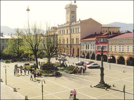 Pravoúhlé náměstí lemované měšťanskými domy ze 17. 18. a 19. století. Na jihozápadní straně je zachováno podloubí s oblázkovou dlažbou. Na domech je pseudoslohová architektura barokní, renesanční i gotická. Uprostřed náměstí je kamenná kašna s Neptunem, sloup Panny Marie, socha sv Jana Nepomuckého a socha sv. Floriána. Náměstí dominuje budova novoromantické radnice z roku 1891 se znakem města. Z dolní části náměstí je přístup ke kostelu sv. Martina - Dolní kostel, Horní ulicí přijdeme ke kostelu sv. Jana Křtitele - Horní kostel. Na domě č.p. 2 je pamětní deska malíře Břetislava Bartoše, na domě č.p. 19 pamětní deska místního rodáka žijícího v Americe - sochaře Albína Poláška
