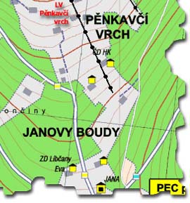 DOSTUPNOST 1.Pěšky z parkoviště Velká Úpa po modré turistické značce až k boudě Jana (2 km), odtud 500 m severně na spodní stanici vleku. Převýšení 200 m. 2.Pěšky z parkoviště Spálený Mlýn k boudě Jana (2,3 km), odtud 500 m severně na spodní stanici vleku. Převýšení 145 m. 3.Sedačkovou lanovkou Portášky (Velká Úpa), z horní stanice se vydat na lyžích vpravo po žluté turistické značce až k boudě Jana (je to lesní cesta, která vede po vrstevnici mírně s kopce) - cca 10 min.