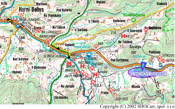Orientačním bodem je Penzion u Sachovy studánky (na pravé straně silnice), který se již nachází v bezprostřední blízkosti lyžařského střediska. Nejbližší autobusová zastávka - Horní Bečva Paseky - se nachází 300 m od střediska. Nejbližší vlakové spojení - Rožnov p. Radhoštěm (17 km). Pracovní doba je denně od 9.00 do 16.00 hodin, večerní lyžování od 18.00 do 21.00 hodin. Sjezdové tratě jsou ve výšce 640 - 740 m n. m., upravované rolbou Kässbohrer 200 se závěsnou sněhovou frézou a osvětlené. Je zde i koutek v podobě dětské lyžařské školy. V prostoru lyžařské školky se nachází i trampolína. Lyžařská škola je pro děti do 12 let a její součástí je speciální LV Karussel o průměru 7,5 m otáčející se kolem své osy. Karussel je určen pro první kroky na lyžích či snowboardu. Parkoviště pro 130 aut je vzdáleno 170 m od vleku, je zdarma. Půjčovna lyží a ski servis jsou součástí areálu. Nabízíme i občerstvení s krbem ve vyhřáté kolibě nebo na venkovní prosklené terase s výhledem na sjezdovku.