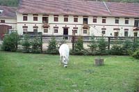 Stáje jsou součástí uzavřeného, obydleného objektu, takže koně jsou pod nepřetržitým dohledem. Boxy jsou světlé a prostorné, stáje jsou vhodné i pro koně s respiračními obtížemi a nyní nově nabízíme i omezený počet venkovních boxů. Krmíme 3 x denně dle individuálních požadavků na krmné dávky, podestýlka dle dohody piliny, sláma či kombinovaná. Koně chodí každý den do výběhu či na pastvinu a v případě špatného počasí se mohou proběhnout i v hale. Cena ustájení je 5. 000 CZK měsíčně.