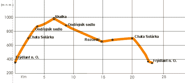 Úsek trasy: Frýdlant nad Ostravicí - Ondřejník - Frýdlant nad Ostravicí