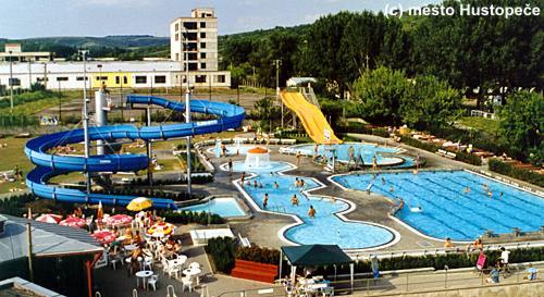 - vodní atrakce - tobogán délky 70 m, skluzavky