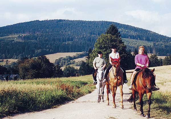 Typicky horská chalupa v nadmořské výšce 700 m nabízí kromě ubytování v pokojích s WC, sprchou a TV se satelitem možnost celodenního stravování a hlavně vyjížděk na koních po okolí. Je celoročně přístupná automobilem a parkovat lze přímo u objektu. Zimní vyjížďky na saních, skijering, vyjížďky s přenocováním, víkendové kurzy ježdění, vyjížďky do hor. Restaurace je otevřena ráno od 08.00 do 22.00 a často i déle. Po celý den si zde můžete dát něco k pití, vybrat si z jídelního lístku něco dobrého k zakousnutí, či si dopřát něco sladkého ? třeba zmrzlinový pohár.