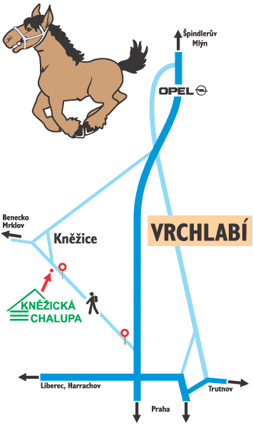 Kněžická chalupa leží v nadmořské výšce 700 m mezi Vrchlabím a Beneckem uprostřed lesíků a pastvin.