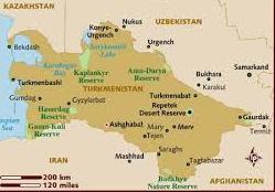 Turkmenistán (turkmensky: Türkmenistan, rusky: Туркмения) je turkický stát ve střední Asii. Do roku 1991 byl jako Turkmenská sovětská socialistická republika (Turkmenská SSR) součástí Sovětského svazu. Na jihovýchodě sousedí s Afghánistánem, na jihozápadě s Íránem, na severovýchodě s Uzbekistánem, na severozápadě s Kazachstánem a na západě s Kaspickým mořem. Název Turkmenistán pochází z perštiny a znamená ?země Turkmenů.? Hlavním městem je Ašchabad. |