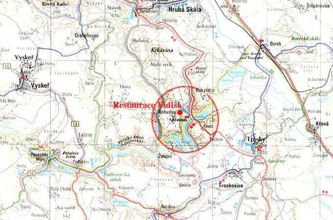 Restaurace Vidlák se nachází v kaňonovitých údolích pod hradem Trosky, kde je soustava osmi rybníků: Věžák, Nebák, Vidlák, Krčák, Hrůdka, Rokytnický, Dolský a Podsemín. Břehy rybníků tvoří většinou pískovcové skály. V létě jsou rybníky příhodné pro koupání a jejich okolí zve k romantickým procházkám. Podél Želejovského potoka, který protéká rybníky Vidlák, Krčák, a Věžák a vlévá se do Žehrovky, se rozkládá Želejovské údolí, které je lemováno skalami a jehličnatými lesy.