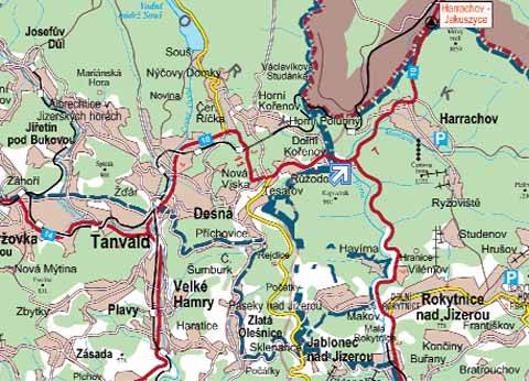 Poloha hotelu na spojnici cest z Harrachova do Rokytnice nad Jizerou a Kořenova je výhodná zejména pro zájemce o snadný přístup nejen do Harrachova, ale i do dalších známých středisek v okolí: Rokytnice n Jiz., Paseky n. Jiz., Jablonec n. Jiz. či do dalších zajímavých lokací v Jizerských horách. Nedaleko položený Harrachov je známým lyžařským střediskem se dvěma čtyřsedačkovými lanovkami, množstvím lyžařských vleků a 60 km upravených tratí pro běh na lyžích. V mimozimním období oplývá Harrachov množstvím zajímavých turistických tras a stezek pro cykloturistiku. Ve městě je celé škála služeb - obchody, banky, bankomaty, pošta a dále jsou zde tenisové kurty, letní a kryté bazény, golf, minigolf, bowling, plážový volejbal, několik klubů a diskoték. V každém období zde návštěvník najde plný servis včetně půjčoven sportovního vybavení.