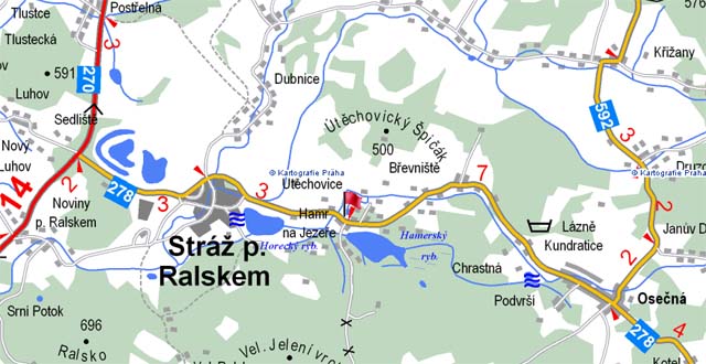 Penzion Tereza leží v rekreační oblasti obce Hamr, 200 metrů od jezera. Celá oblast nabízí ideální podmínky pro pěší turistiku, cykloturistiku, koupání, rybaření a houbaření.