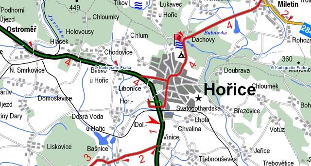 Hořice v Podkrkonoší (2 km) - banka, bankomat, pošta, autobusová a vlaková zastávka, nákupní centrum, bowling, tenisové kurty, taxi.