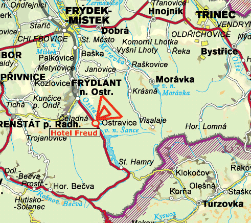 Hotel Freud je přímo v srdci rekreační oblasti Beskyd v podhorské obci Ostravice. Již více než sto let nabízí své služby návštěvníkům obce, základně mnoha turistických cest. Jako na dlani z hotelu FREUD vidíte hřebeny a údolí beskydských hor, které zvou do přírody. Dobře značené turistické a lyžařské "cesty" nabízí nevšední a překvapující rozhledy, jimž dominují pohledy z Lysé hory (1 324 m). Domácí i zahraniční návštěvníci nikdy neopomenou navštívit restauraci i pivnici v hotelu FREUD. Při dobrém jídle, pití a rekreačním kulečníku je čas na rozmluvy s přáteli o zážitcích z cest.
