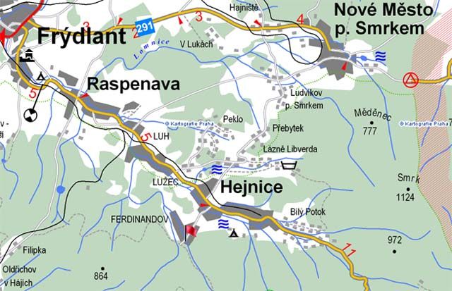 • Z Hejnic přes Lázně Libverda a Obří sud do Bílého potoka