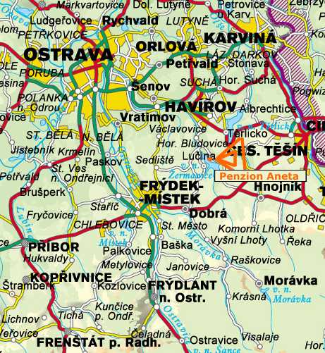 Penzion Aneta se nachází 5 km od Havířova a 11 km od Frýdku-Místku, v bezprostřední blízkosti pláže Žermanické přehrady, v její nejatraktivnější lokalitě. Penzion disponuje vlastním parkovištěm, pro ubytované hosty zdarma. Nejbližší autobusová zastávka je v Soběšovicích.