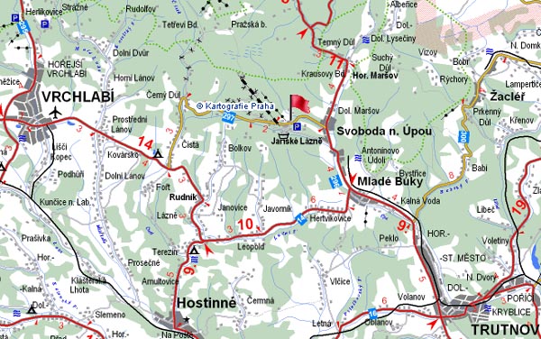 Hotel se nachází v Krkonoších - Janské Lázně po levé straně směrem na Dolní Maršov v nad. výš. 700 m nad mořem. Nabízí saunu a zajišťuje vlastní masérku. V Janských Lázních byl v r. 1939 otevřen první evropský ústav, léčící dětskou obrnu. Dnes se zde léčí poruchy pohybového ústrojí, choroby kůže a dýchacích cest. Dle kroniky, byly zdejší prameny objeveny již 6.6.1006, jistým zbrojnošem Janem Hockovem.