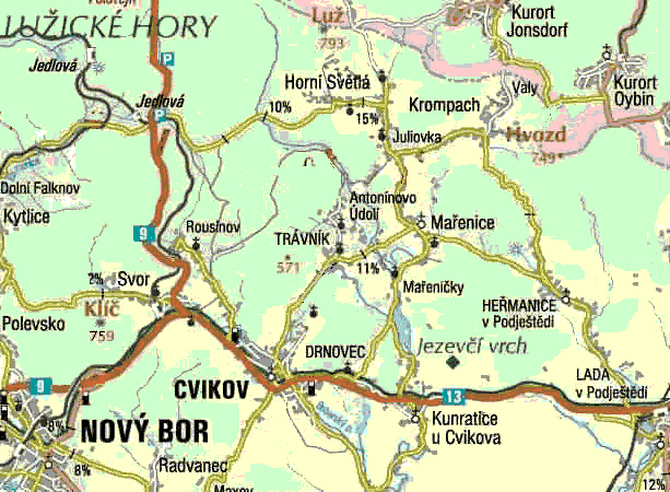 Přestože je hotel situován v klidné krajině, jsou zde velmi dostupné služby, banka je v Novém Boru, bankomat ve Cvikově, pošta v Mařenicích, autobusová zastávka je přímo v obci a vlaková stanice v obci Svor. Koupání je možné přímo v Trávníku, tak jako pěší turistické trasy, lyžařské běžecké tratě a sjezdovky. Golf si můžete zahrát nedaleko odtud na ranči Malevil, kde je i jízdárna. Pokud byste se chtěli vydat za kulturou, Česká Lípa je odtud 15 minut autem, Nový Bor 10 minut a Liberec 30 minut.