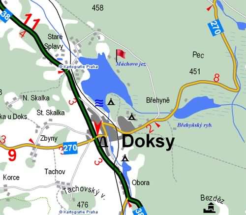 V Doksech (7 km) jsou banky, bankomat, prodejna PLUS a hlavní pláž. Ve Starých Splavech (2 km) je řada restaurací tenisové kurty, fitnes, půjčovna kol a také pláž s tobogánem a spoustou atrakcí hlavně pro děti.
