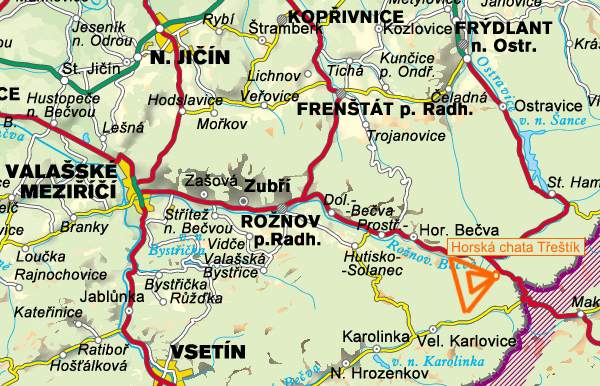 horská chata Třeštík leží v překrásném prostředí na hřebenu Vsackých Beskyd (850 m.n.m.), přímo na křižovatce turistických tras, které vedou na Benešky, Horní Bečvu, Soláň, Pustevny, Velký Javorník a mnoho dalších turisticky atraktivních míst. Svým umístěním v čistém prostředí chráněné krajinné oblasti zaručuje optimální podmínky pro pobyty dětí ve škole v přírodě, pro lyžařské kurzy, turistické výcviky a výlety.