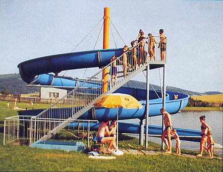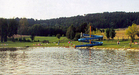 V provozu: 1.6. ? 30.9. Vstupné na koupaliště: 20,- Kč (děti do 15 let 10,- Kč) možnost permanentek - slevy Ceny: 1 buňka/den 240,- Kč stan - 1 osoba/den 30,- Kč přívěsy - 1 osoba/den 40,- Kč + elektřina 20,- Kč sprchy 15 min. 15,- Kč Celodenní občerstvení, po předběžné objednávce teplá jídla Taneční parket, víceúčelové hřiště, dětské hřiště, skluzavka, tobogan. |