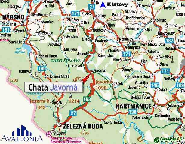 Chata leží v pošumavské vesničce Javorná, která se charakterem vrací do dob Karla Klostermanna. Javorná je oblast pohoří a ostrov zachovalé přírody v srdci Evropy na hranicích mezi ČR a Bavorskem. Hostům jsou k dispozici pohodlně vybavené apartmány, které jsou tvořeny 2 pokoji, kuchyňkou + sociálním zařízením (WC a koupelna se sprchovým koutem). Do vybavení patří i televizor, lednička, mikrovlná trouba a myčka na nádobí. V přízemí se nachází společenská místnost s barem s kapacitou 20 - 25 osob, kterou je možné využít i k pořádání školení, seminářů, obchodních jednání, firemních setkání a večírků v uzavřené společnosti.