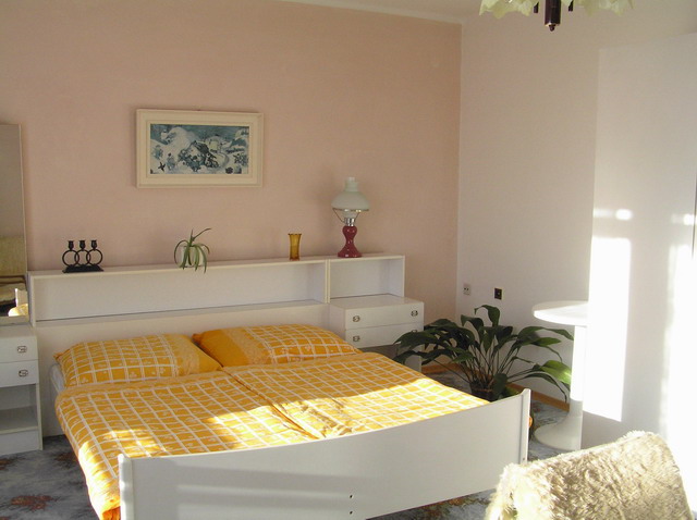 Ubytování ve dvoulůžkovém a třílůžkovém pokoji v prvním patře rodinného domku v klidné části města, s výhledem na údolí. Třílůžkový pokoj má balkon. Parkování před domem. Kompletně vybavená kuchyňka, WC a sprchový kout jsou společné pro oba pokoje.