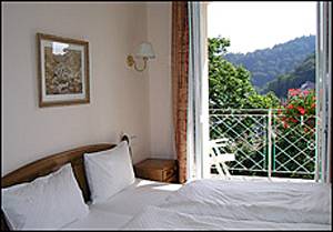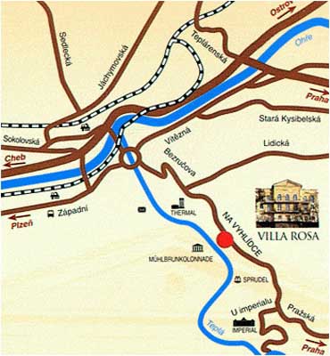 Pension leží na místě s překrásným výhledem na okolní krajinu i na lázeňské centrum Karlových Varů s Vřídlem. Slunná poloha v klidném prostředí lázeňského parku, 10 min. chůze od Vřídla.