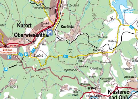 Vlakové a autobusové spojení je z Chomutova, autobusové též z Kadaně nebo Klášterce nad Ohří. Nedaleko jsou dva hraniční přechody s SRN. Přímo u penzionu je zastávka SkiBusu. Nedaleko jsou hraniční přechody do SRN. V létě oceníte nepřeberné množství turistických tras a možnost houbaření, v zimě zdejší pobyt ocení jak milovníci běžek, tak sjezdového lyžování.