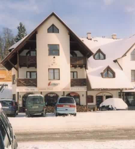 Penzion je součástí nově moderně vybudovaného obchodního středu města přímo u lyžařského areálu Čerťák s výhledem na skokanské můstky. Kromě ubytování v útulných dvou, tří a čtyřlůžkových pokojích s možností přistýlky, vybavených WC a TV-SAT nabízí také stravování ve vlastní stylové pizzerii. Zde jsou také formou bufetu podávány snídaně, večeře pak výběrem z jídelního lístku. V restauraci je možné platit stravenkami CHÉQUE DÉJEUNER.