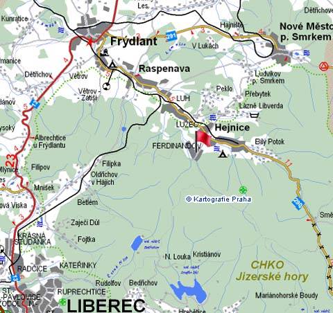 Nádraží ČD, zastávka autobusu, benzínová čerpací stanice, banka, bankomat, fitness, půjčovna kol ? Hejnice (2 km). Po dohodě je možné zajistit dovoz a odvoz z Hejnic. Lze zajistit i pronájem tenisových kurtů, vzálených asi 500 m.