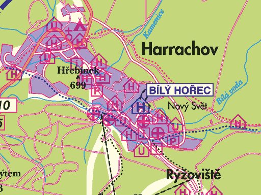 Hotel se nachází přímo v centru Harrachova ? naproti skokanským můstkům. Hostům nabízí ubytování v příjemném hotelu s rodinnou atmosférou a vynikající kuchyní. Všechny pokoje jsou vybaveny sociálním zařízením, telefonem a televizorem. V letních měsících je v provozu letní terasa s možností občerstvení.