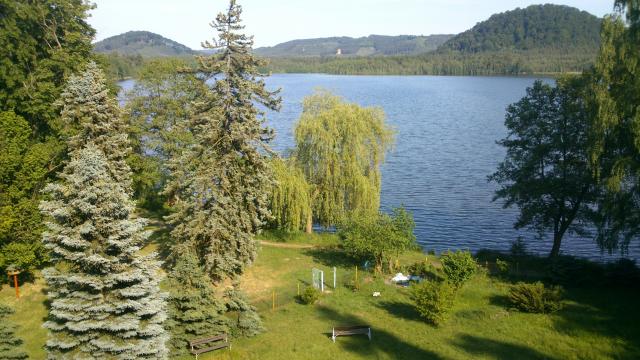 Výhled na jezero ze zahrady Penzionu